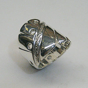 | 作品No.:【20mm幅-01】 サイズ=9.6号 幅 =Top部:20mm、Under部:8mm 厚さ =1.5mm 素材 =Silver950、いぶし仕上げ |